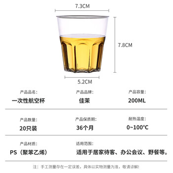 佳茉航空杯200ML一次性塑料杯八角杯20只饮水杯加厚商务招待杯阶梯杯