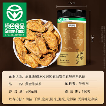 贡苑【绿色食品】正宗黄金牛蒡茶260g 大片鲜牛蒡根熟牛滂干牛榜子