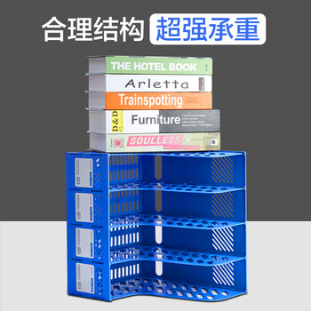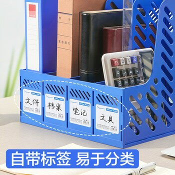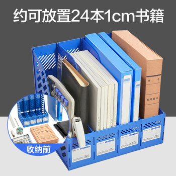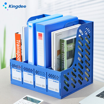 金蝶(kingdee)四联镂空桌面文件框栏书立架档案收纳盒 办公室带标签资料文件置物架书本资料收纳 蓝色W3002
