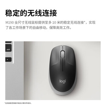罗技(Logitech)M190 无线鼠标 笔记本电脑商务办公家用全尺寸光电鼠标 适用中大手型 红色