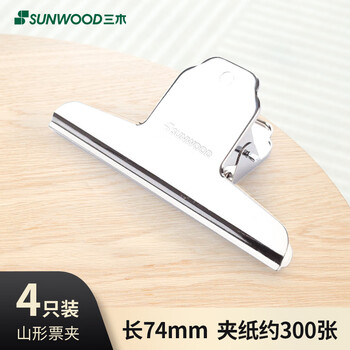 三木(SUNWOOD)74mm山型铁票夹/财务票据夹/金属资料夹 4只/袋 2069