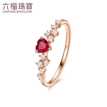 六福珠宝 18K金心形红宝石钻戒 11号-红宝石23分/钻石共13分/约1克