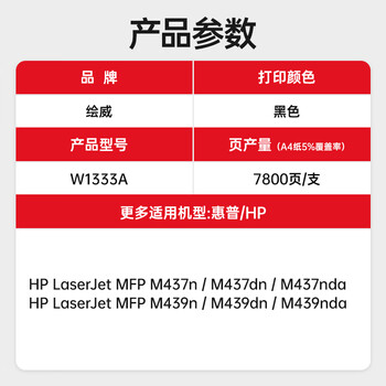 绘威W1333A粉盒带芯片2支装 适用惠普HP M437n M437dn墨粉盒M437nda墨盒M439n硒鼓M439dn M439nda打印机碳粉