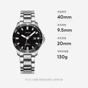 依波(EBOHR)手表男 飞驰系列100米防水黑面夜光节日礼物石英男表51490119