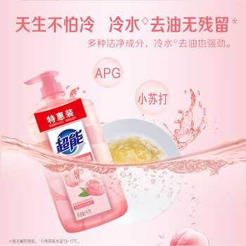 超能白桃苏打洗洁精1kg*2瓶 白桃清新祛味 加浓配方APG植物洁净
