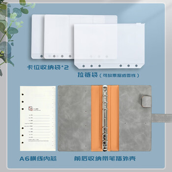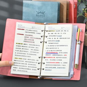 嘉然恒 A6多功能活页本创意小号手账本笔记本本子便携记事本拉链收纳本皮面搭扣本定制 粉色1本
