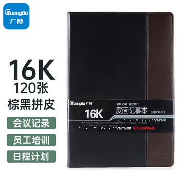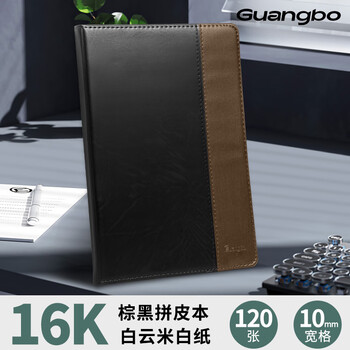 广博(GuangBo)16K/120张拼皮商务办公笔记本子会议记录皮面本日记本记事本子 棕黑GBP0645
