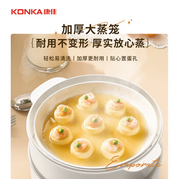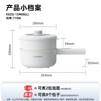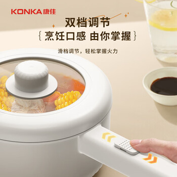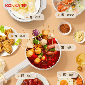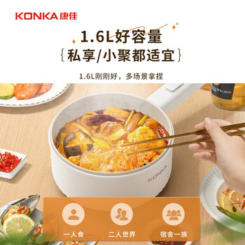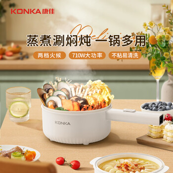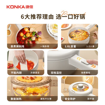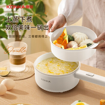 康佳(KONKA)电煮锅 电火锅电蒸锅 多功能宿舍煮面锅 1.6L迷你电锅不粘锅 带蒸笼 KGZG-15M08(L)