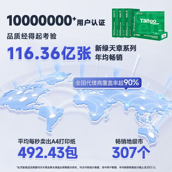 天章 (TANGO)新绿天章A4打印纸 70g 500张*5包【豪华品质】双面打印复印纸 纸张洁白顺滑不卡纸 整箱2500张