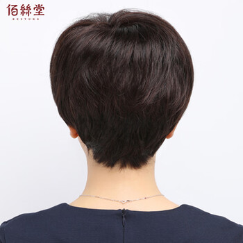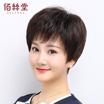 佰丝堂假发女短发全头套式短直发中老年妈妈整顶发套真发均码(自然黑)
