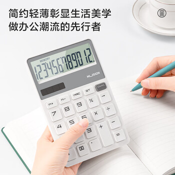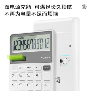 得力时尚办公计算器 德国创意设计 大按键双电源设计 高颜值学生四年级计算器 白色NS042
