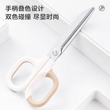 得力小号弧形剪片省力剪刀 德国创意设计 主副双拼色设计办公文具/家用 白色NS056