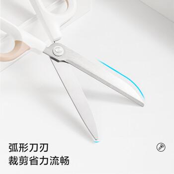 得力大号弧形剪片省力剪刀 德国创意设计 主副双拼色设计办公文具/家用 白色NS055