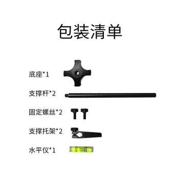 底座*1, 支撑杆*2, 固定螺丝*2,支撑托架*2