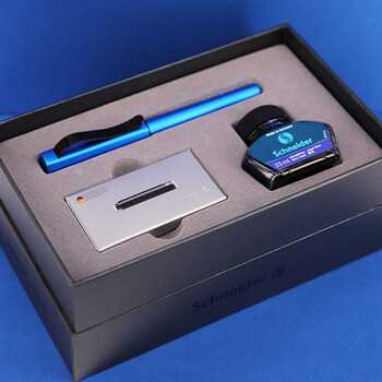 施耐德(Schneider)【礼物】钢笔墨水直液式礼盒套装礼物金属签字笔成人商务办公礼品F尖贝斯麦蓝色9252