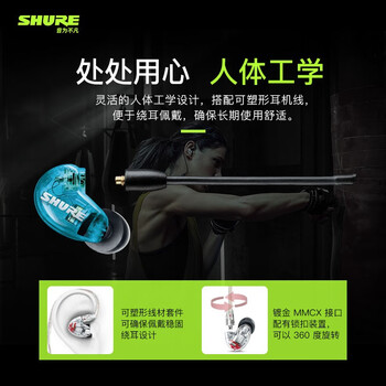 SHURE舒尔Aonic215 UNI动圈有线耳机 入耳式线控通话 强劲重低音 运动 HIFI 手机耳机 蓝色