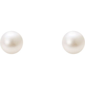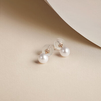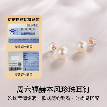 周六福红18K金珍珠耳钉赫本风耳饰生日礼物近圆形 经典款 6.5-7mm
