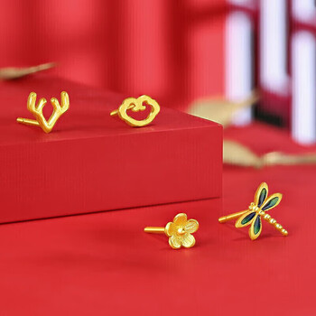 赛菲尔 黄金耳钉女足金999.9卡通国潮风耳钉个性百搭 鹿角0.45克 单支