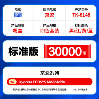 格赞 TK-8148粉盒适用京瓷kyocera ECOSYS M8224cidn碳粉墨粉彩色复印机硒鼓墨盒墨粉筒 四色套装