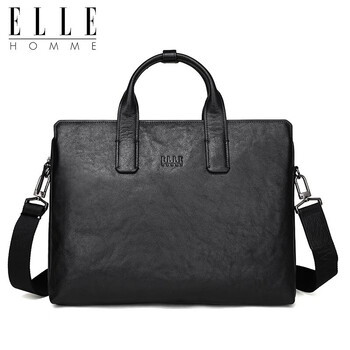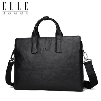 ELLE HOMME男士商务公文包 植鞣头层牛皮手提包 大容量单肩斜跨包休闲电脑包NBEA088206411黑色