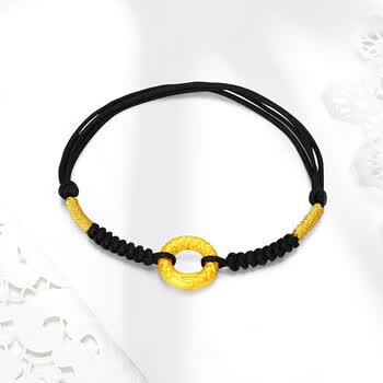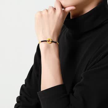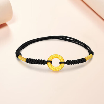 梦金园【情人节礼物】黄金转运珠龙鳞凤尾足金平安扣3D硬金情侣手链