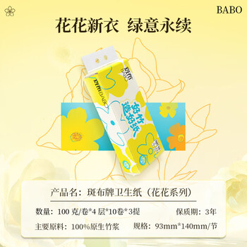 斑布无芯卷纸 4层100克*30卷 亲肤无刺激 本色纸 卫生纸 纸巾 整提