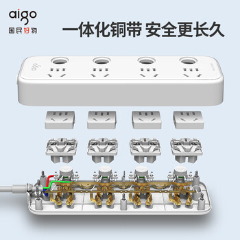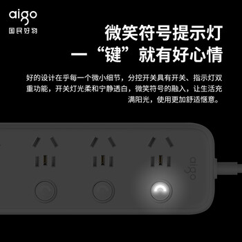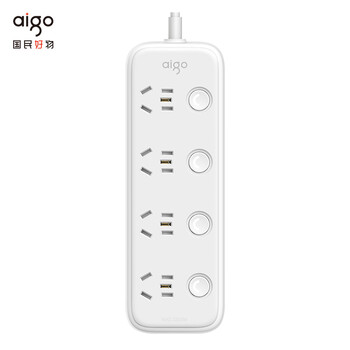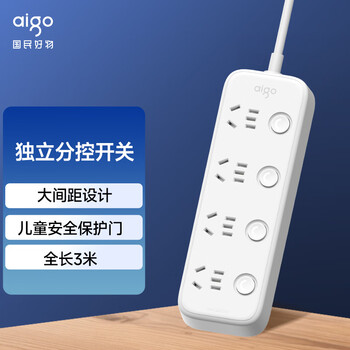 爱国者(aigo)插座/插线板/插排/接线板/拖线板/排插4位分控全长3米独立开关45mm间距大插孔AC0404新国标