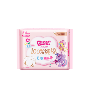 七度空间少女超薄卫生巾100%纯棉亲肤透气姨妈巾245mm*5片【新国标认证】