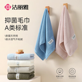 洁丽雅纯棉毛巾7A抗菌新疆棉2条洗脸家用柔软洗澡情侣洁面巾吸水速干