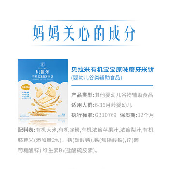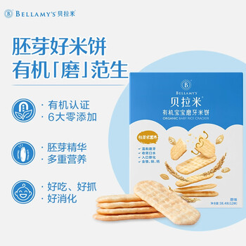 贝拉米(Bellamy's)有机宝宝磨牙米饼 宝宝零食 婴幼儿米饼 原味 38.4g