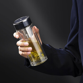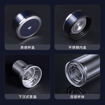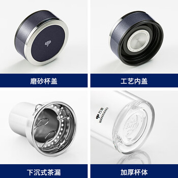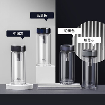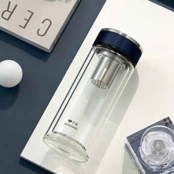 万象(WANXIANG)双层玻璃杯V33RL时尚便携礼盒装蓝黑色泡茶杯480ML居家带滤网水杯