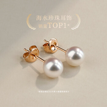 GiO珠宝 Akoya海水珍珠耳钉18K金耳饰女送老婆送女友生日礼物