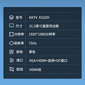 KKTV31.5英寸 办公显示器 75Hz 微边框 广视角 低蓝光爱眼 可壁挂 家用电脑显示屏 K32ZH