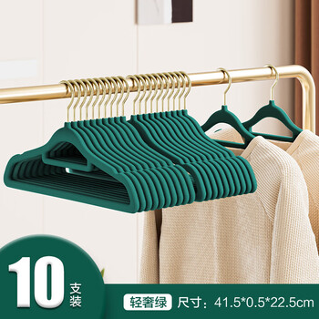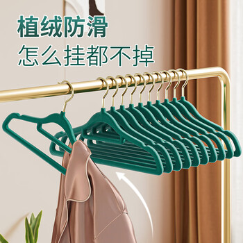 JEKO&JEKO植绒衣架无痕晾衣架衣服架衣撑衣挂衣架子挂衣架衣柜衣架绿色10只