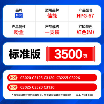 格赞NPG-67粉盒红色适用佳能C3020墨盒C3222L C3130L碳粉C3120L C3125 3525 C3025 C3120 C3330L GPR-53墨粉盒