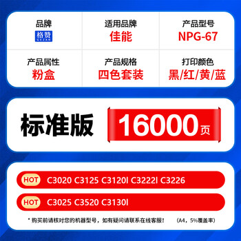 格赞NPG-67粉盒四色适用佳能C3020墨盒C3222L C3130L C3120L C3125 C3226硒鼓C3320 C3530复印机碳粉墨粉盒墨粉