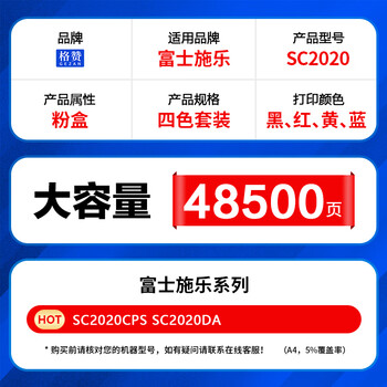 格赞SC2020粉盒适用富士施乐sc2020墨粉DocuCentre施乐SC2020CPS墨粉筒SC2020DA/NM复印机硒鼓墨盒四色套装大容量