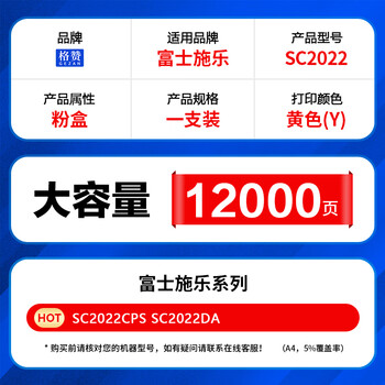格赞 适用富士施乐DocuCentre sc2022粉盒fuji xerox 施乐SC2022CPS SC2022DA复印机硒鼓墨盒 黄色大容量
