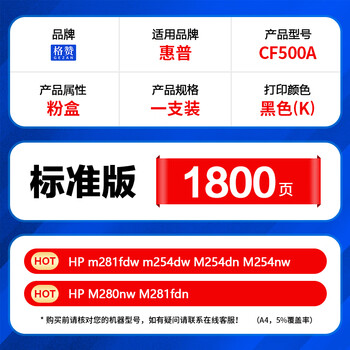 格赞CF500A硒鼓202A适用惠普m281fdw硒鼓m254dw墨盒M254dn墨粉M254nw M280nw彩色M281fdn打印机M281cdw粉盒黑色