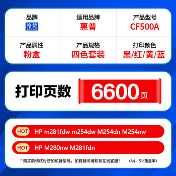 格赞CF500A硒鼓202A适用惠普m281fdw硒鼓m254dw墨盒M254dn墨粉M254nw M280nw M281fdn打印机M281cdw粉盒四色套装