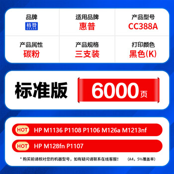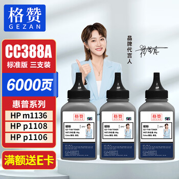 格赞388a 88a碳粉3支装 适用惠普cc388a m1136打印机墨粉p1108 p1106 m126a m1213nf m128fn打印机墨盒硒鼓