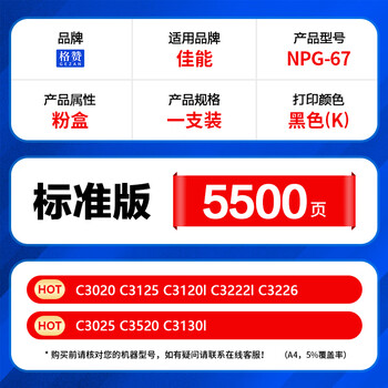 格赞NPG-67粉盒黑色适用佳能C3020墨盒C3222L C3130L碳粉C3120L C3125 C3720 3725 3730 iR-ADV C3520复印机墨粉
