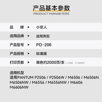 小京人PD206硒鼓适用奔图M6506硒鼓P2506粉盒 M6506n/nw M6556 M6556n/nw M6606n P2506 P2510打印机碳粉盒墨粉盒