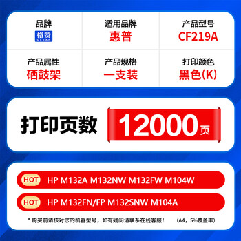格赞CF219A成像鼓适用惠普19a硒鼓架M132a硒鼓M132fw/fn/fp打印机粉盒M104a/w墨盒HP18a CF218a M132nw M132snw