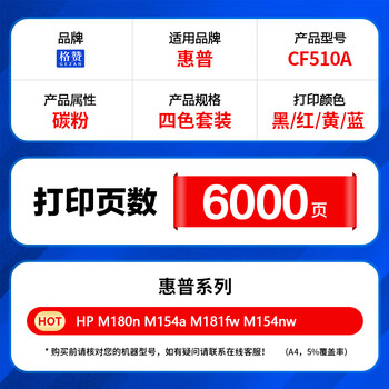 格赞 CF510A四色碳粉套装 204A 适用惠普HP M154a M154nw M180N M181FW硒鼓墨盒墨粉