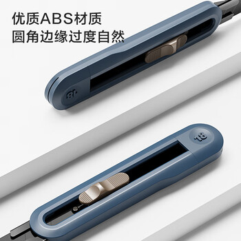 得力(deli)大号撞色设计美工刀壁纸刀裁纸刀 办公用品 尾部自带折刀器 蓝色 NS062