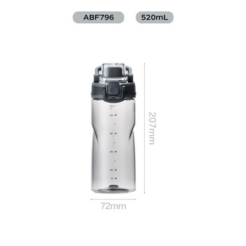 乐扣乐扣(LOCK&LOCK)人鱼线塑料运动水杯夏天便携水壶带刻度提手男女水杯子520ML灰色