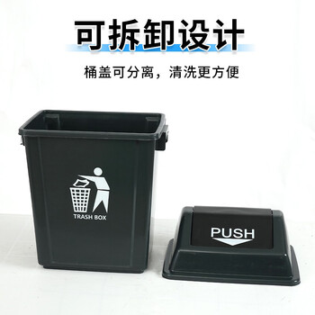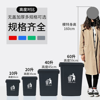 欧湃垃圾桶无盖40L方形黑灰色家用厨房商用餐饮饭店专用大号垃圾箱
