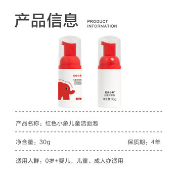 红色小象儿童洁面泡30ml 温和清洁护肤保湿滋润洗面奶 试用装