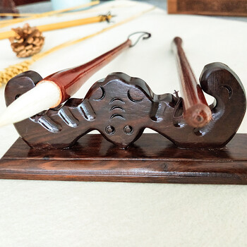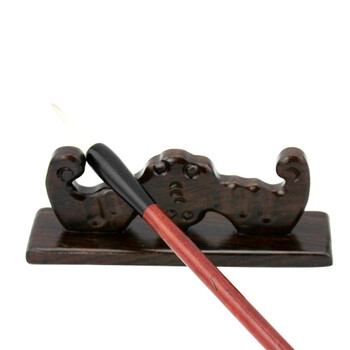 芬尚 文房用品 蝙蝠实木笔搁 黑梓木毛笔架笔托 学生毛笔书法用品笔山 12.5*4.5cm